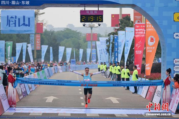 图为A003号选脚黄仁伟领先到达止境,并以2小时19分16秒获东坡马推紧须眉组第别名。中新社记者 刘忠俏 摄