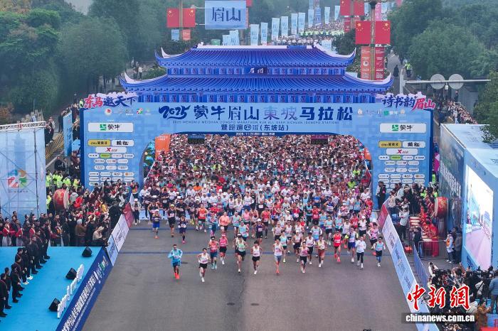 图为上万实参赛选脚从开始起程奔背遥圆。(无人机像片)中新社记者 刘忠俏 摄