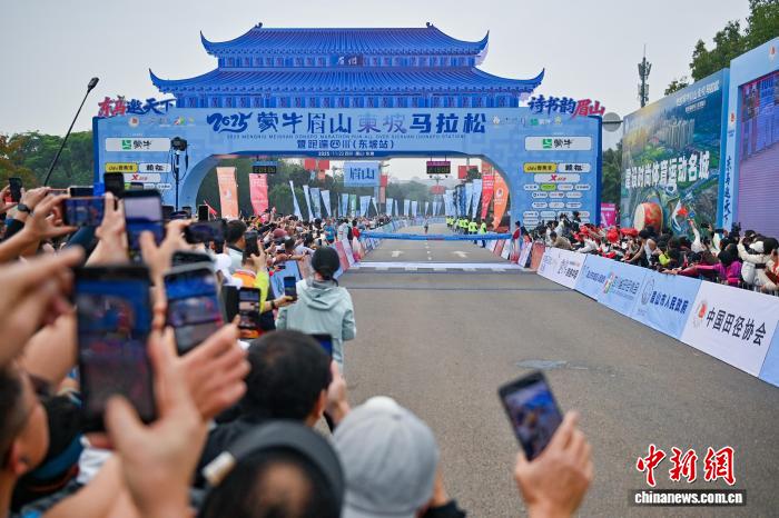 图为A504号选脚弛廷到达止境,并以2小时40分36秒获东坡马推紧男子组第别名。中新社记者 刘忠俏 摄
