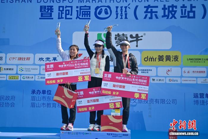 图为东坡马推紧男子组授奖典礼现场,从左至左顺次为第两实毛素、第别名弛廷(中)战第3实杨雪冰。中新社记者 刘忠俏 摄