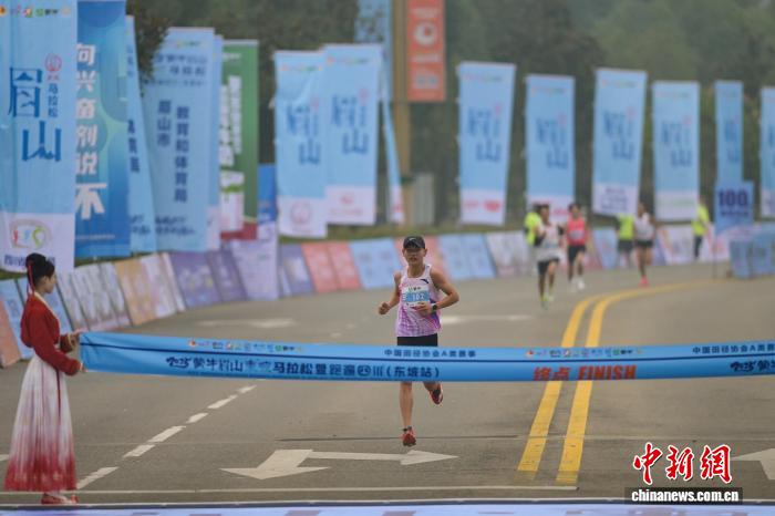 图为A003号选脚黄仁伟领先到达止境,并以2小时19分16秒获东坡马推紧须眉组第别名。中新社记者 刘忠俏 摄