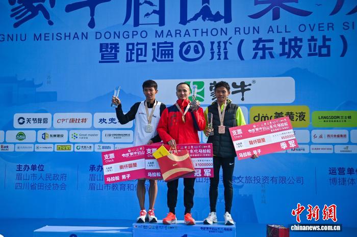 图为东坡马推紧男子组授奖典礼现场,从左至左顺次为第两实毛素、第别名弛廷(中)战第3实杨雪冰。中新社记者 刘忠俏 摄